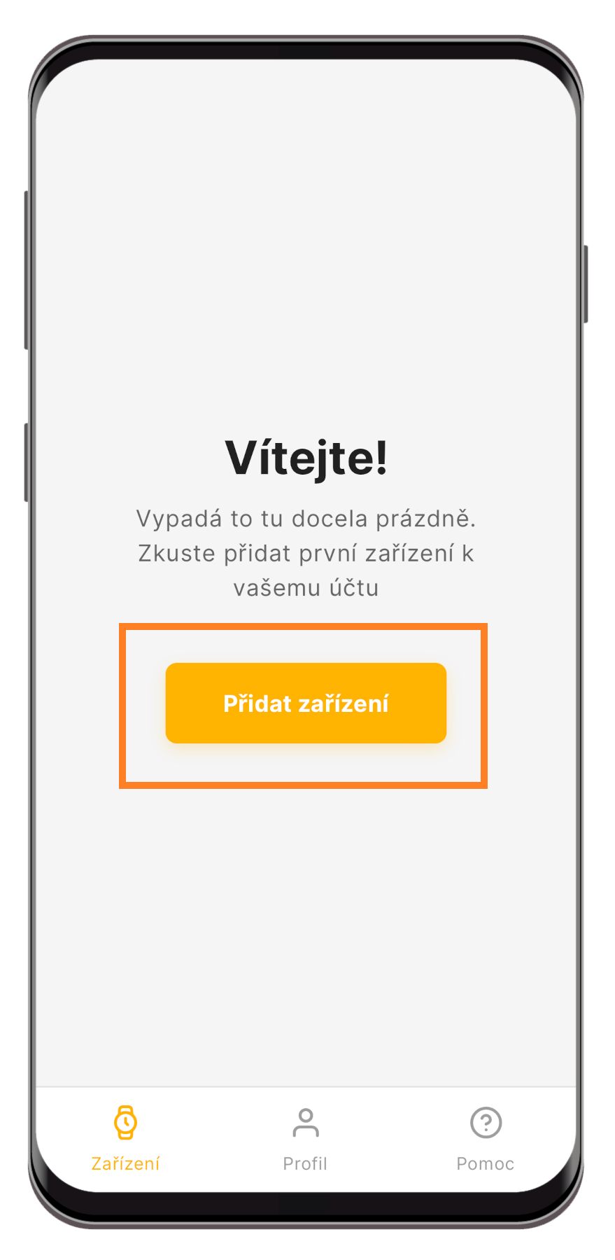 3. Přidejte svůj nový náramek do aplikace. Klikněte na „Přidat zařízení“.