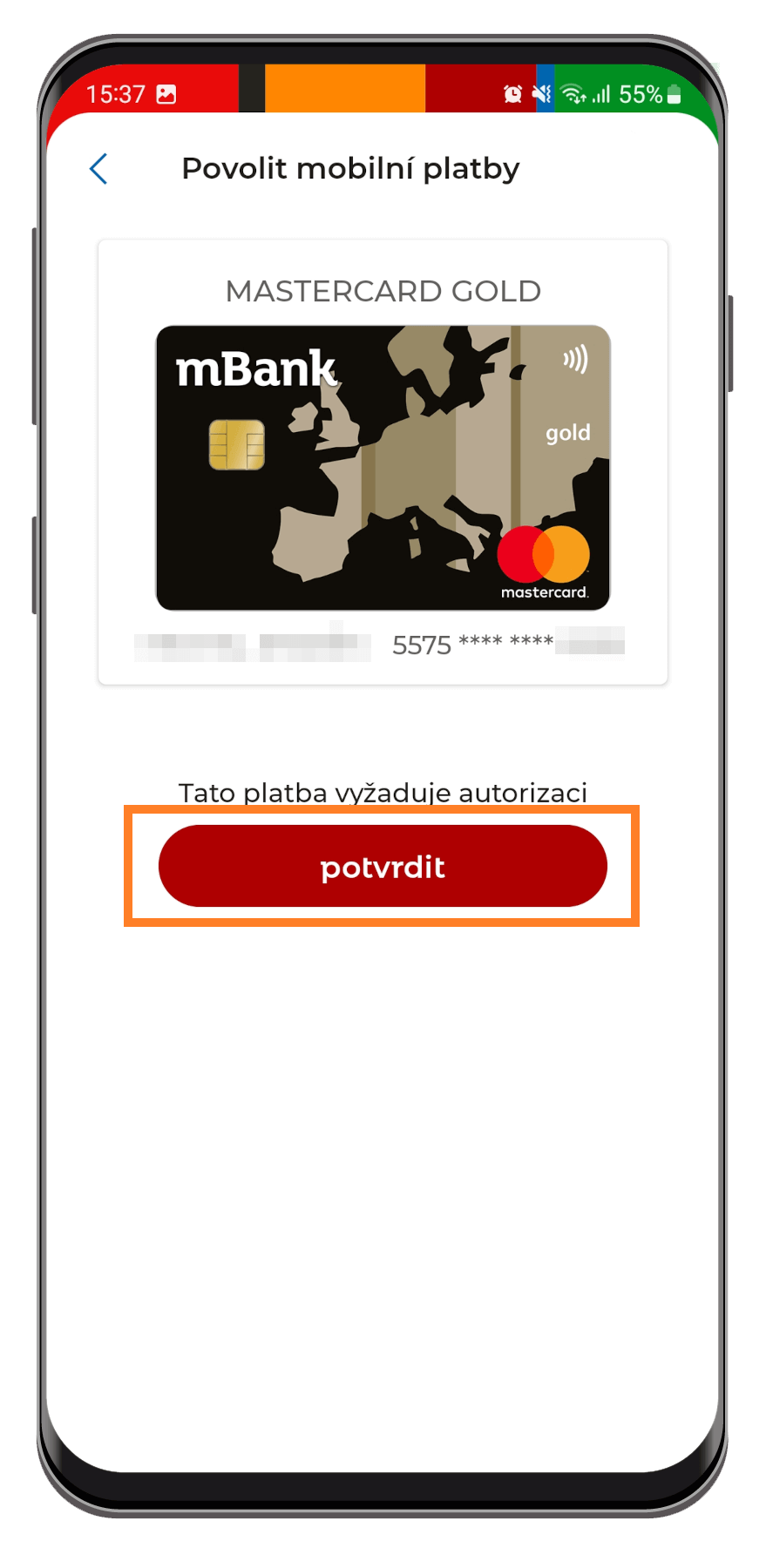3. Zkontrolujte si, že jste vybrali správnou kartu, a po kliknutí na Potvrdit a zadání PIN kódu k appce můžete pokračovat.