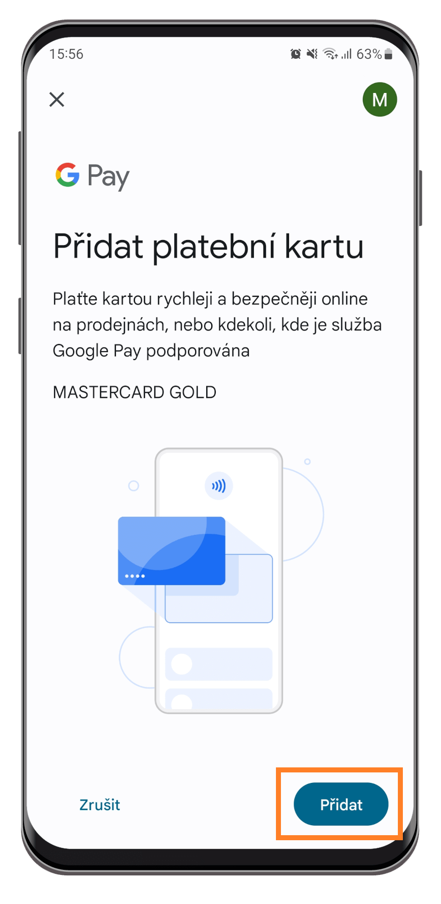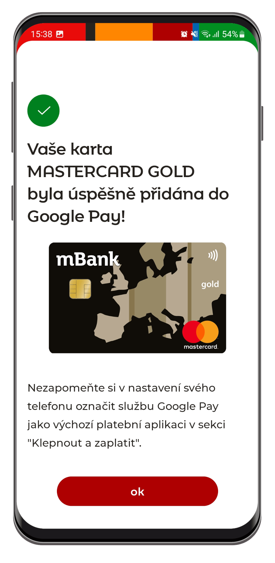 5. Hotovo. Vaše karta je přidaná do Google Pay a vy můžete platit mobilem.