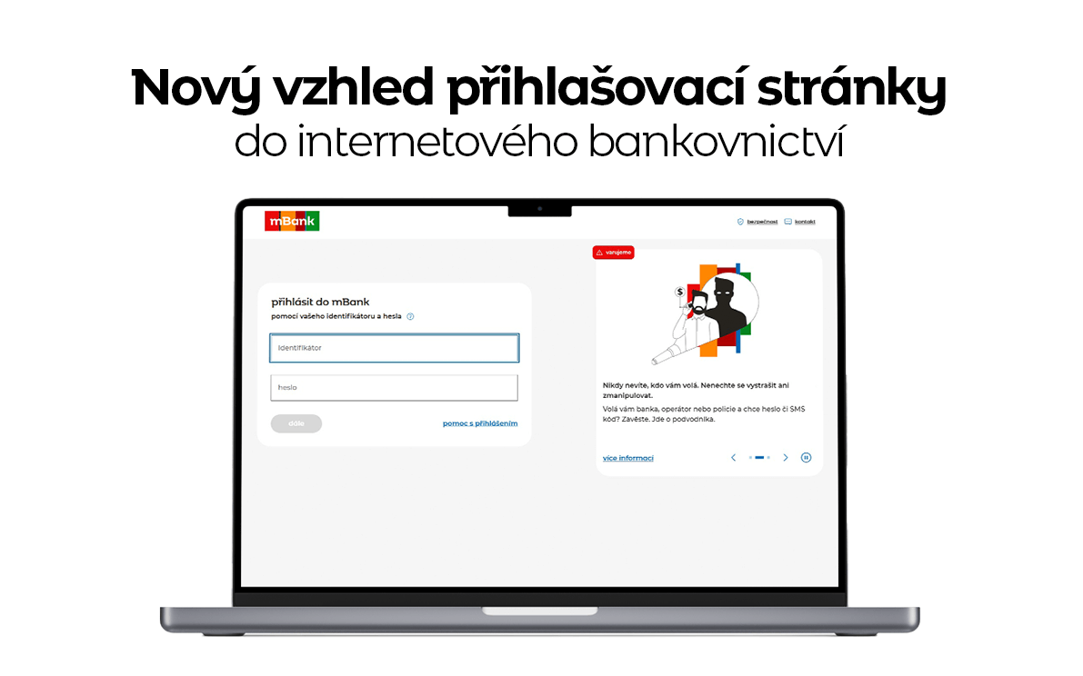 Přihlašovací stránka do našeho internetového bankovnictví se 30. 9. 2025 dočká svěžího hávu. Nově vám na ní budeme také zobrazovat upozornění na aktuální bezpečností hrozby, abychom vám pomohli se před nimi účinně chránit.