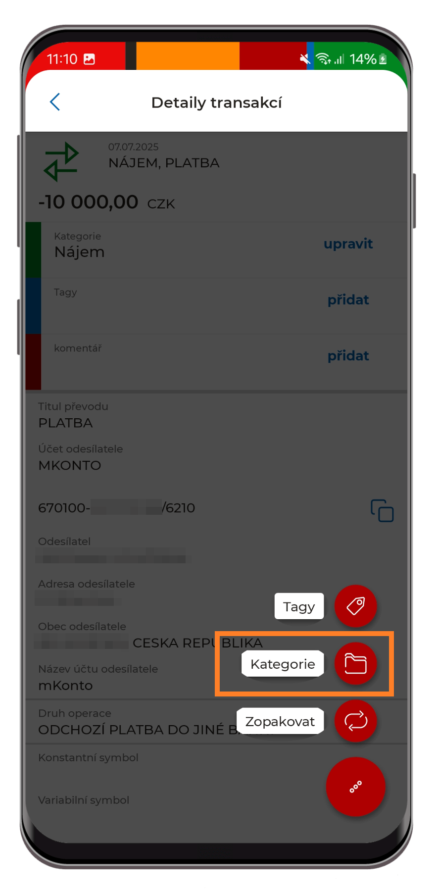 Potřebujete přesunout platbu do jiné kategorie? Žádný problém. Platby se do kategorií řadí automaticky, ale vy máte kdykoli možnost to jednoduše změnit.