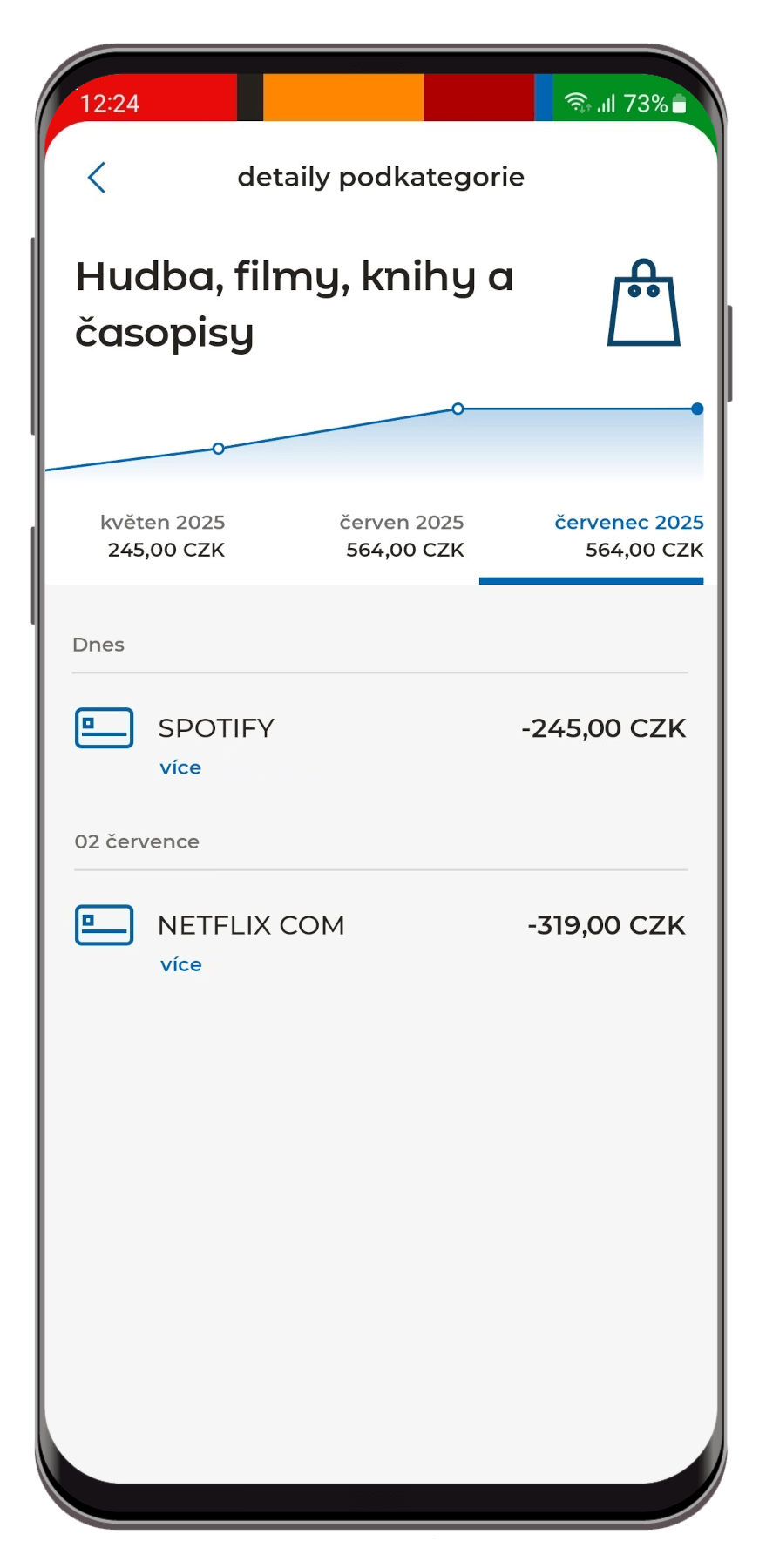 5. Po kliknutí na podkategorii uvidíte podrobné informace o platbách ve vybraném období.