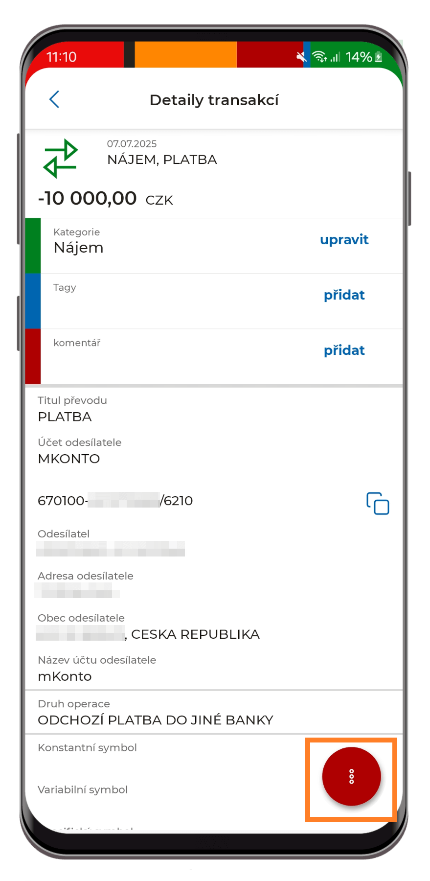 1. Nejprve si v historii plateb najděte příslušnou platbu. Klikněte pro zobrazení podrobností.