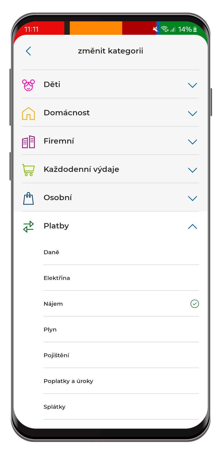 Potřebujete přesunout platbu do jiné kategorie? Žádný problém. Platby se do kategorií řadí automaticky, ale vy máte kdykoli možnost to jednoduše změnit.