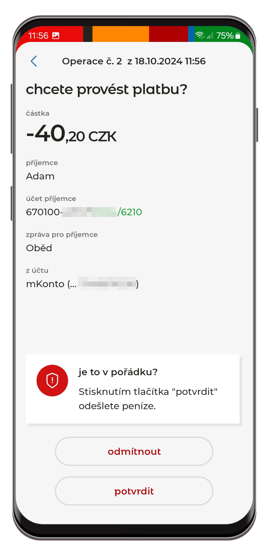 - Stačí jeden klik a je to. Operace potvrzujete rychle a jednoduše v appce.
