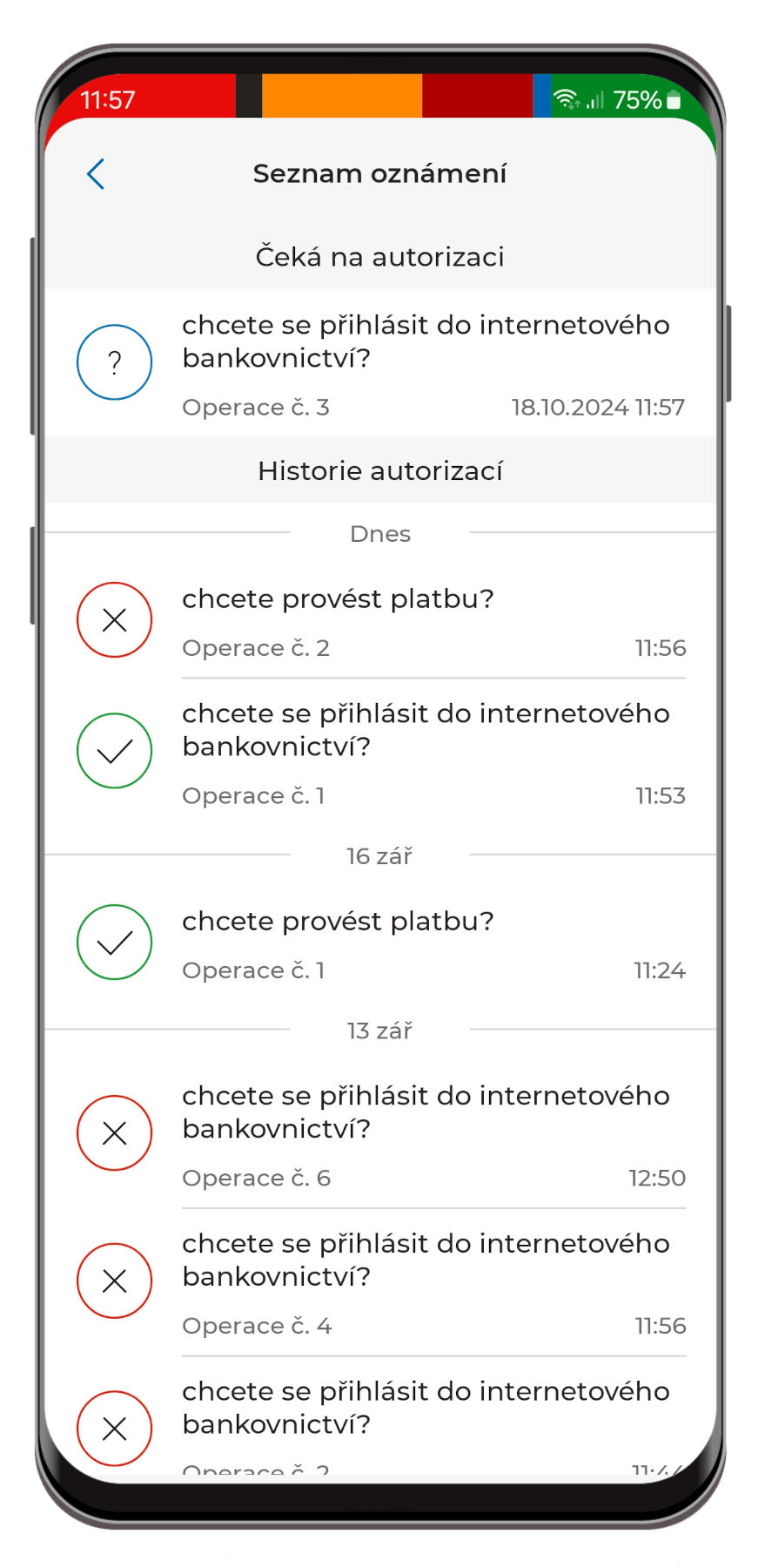 - Všechna oznámení najdete v appce. Kdykoli se můžete i zpětně podívat na potvrzené operace.