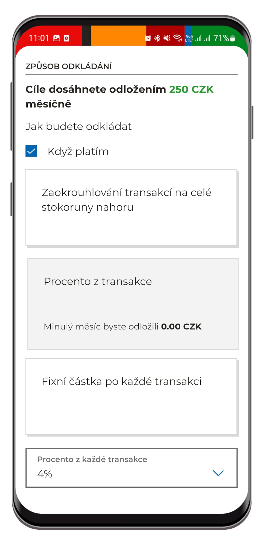 - procento z platby (podle přednastaveného procenta převedeme odpovídající částku z vašeho mKonta na spořicí účet),