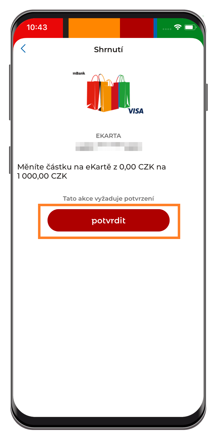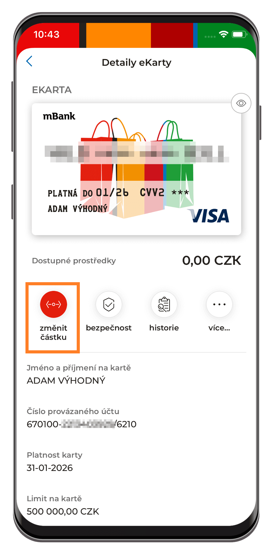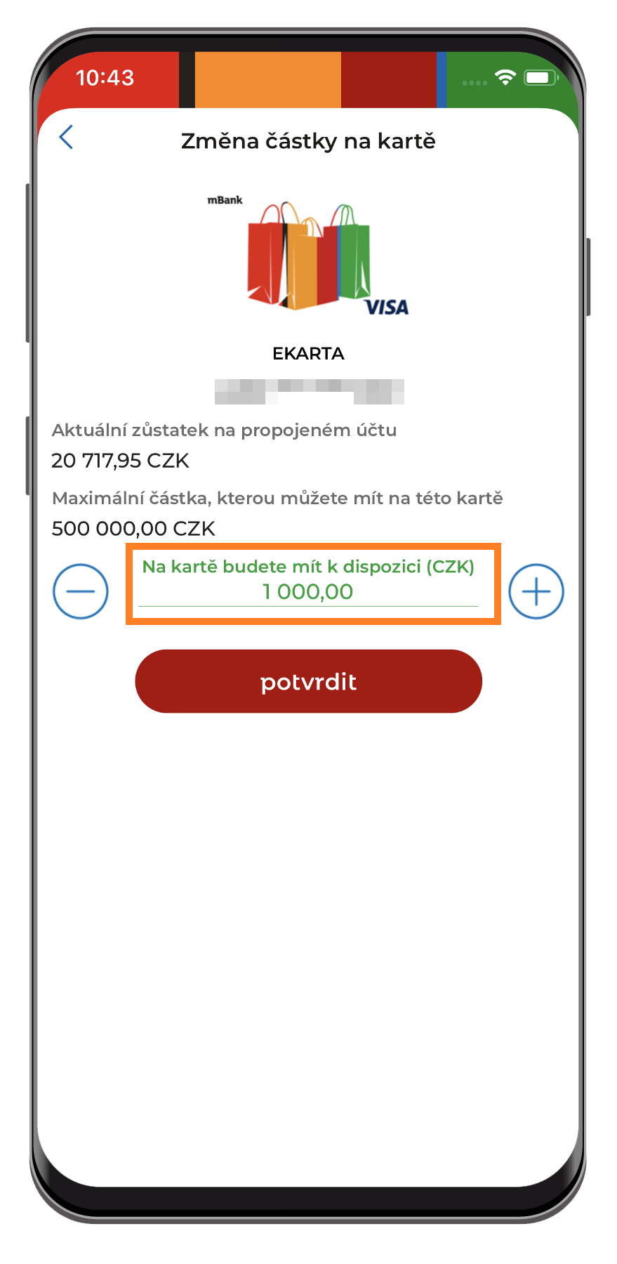 2. Zobrazí se podrobnosti o zvolené eKartě. Klikněte na červenou ikonu s nápisem "Změnit částku".